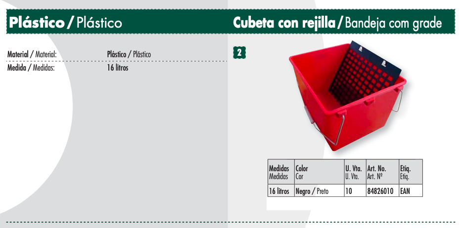 / CUBETA PLASTICO 16 LITROS C/REJILLA