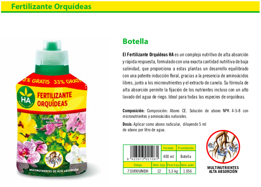 FERTILIZANTE ORQUIDEAS BOTELLA 400 ML cantidad
