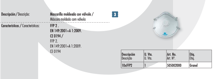 DESECHABLE, MOLDEADA, MOLDEADA C/VALVULA