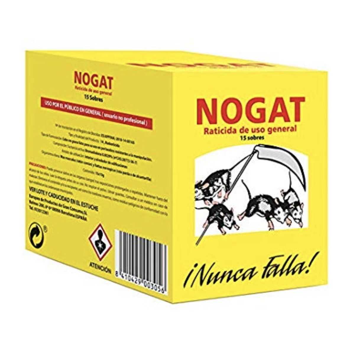 NOGAT Raticida Uso General, potente raticida para exterminar ratas y ratones en cuestión de horas. Popular matarratas comercializado en España desde 1930. Raticida en bolsitas para exterminar ratas y ratones. Se vende por unidad (sobre).