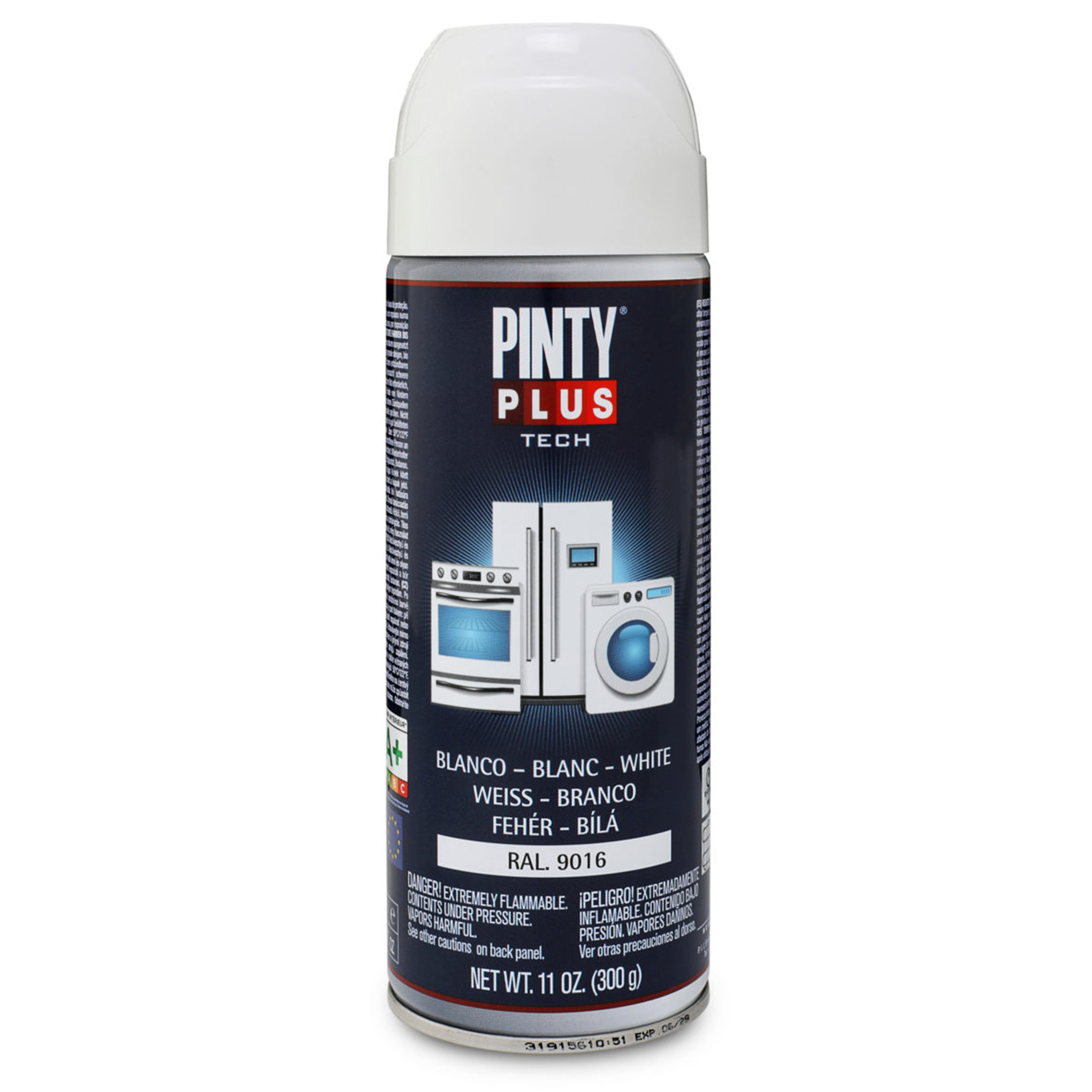 Pintura en spray blanco electrodomésticos de Pintyplus Tech. Es antioxidante de secado rápido y acabado brillante.