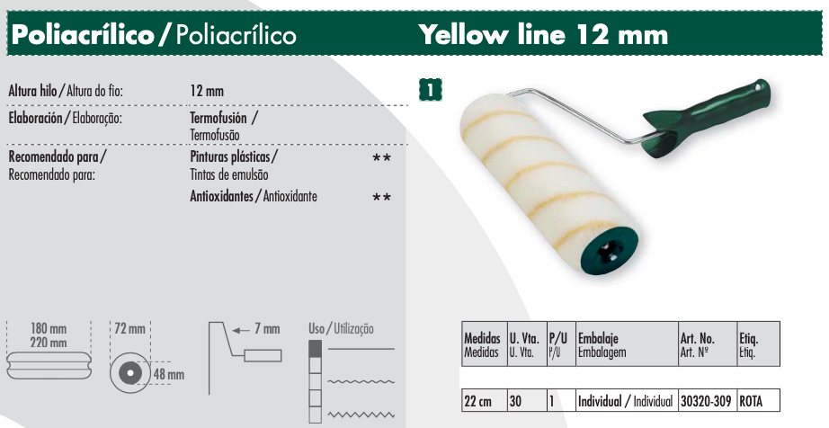RODILLO ANTIGOTA POLIACRILICO 22 CMS YELLOW LINE cantidad