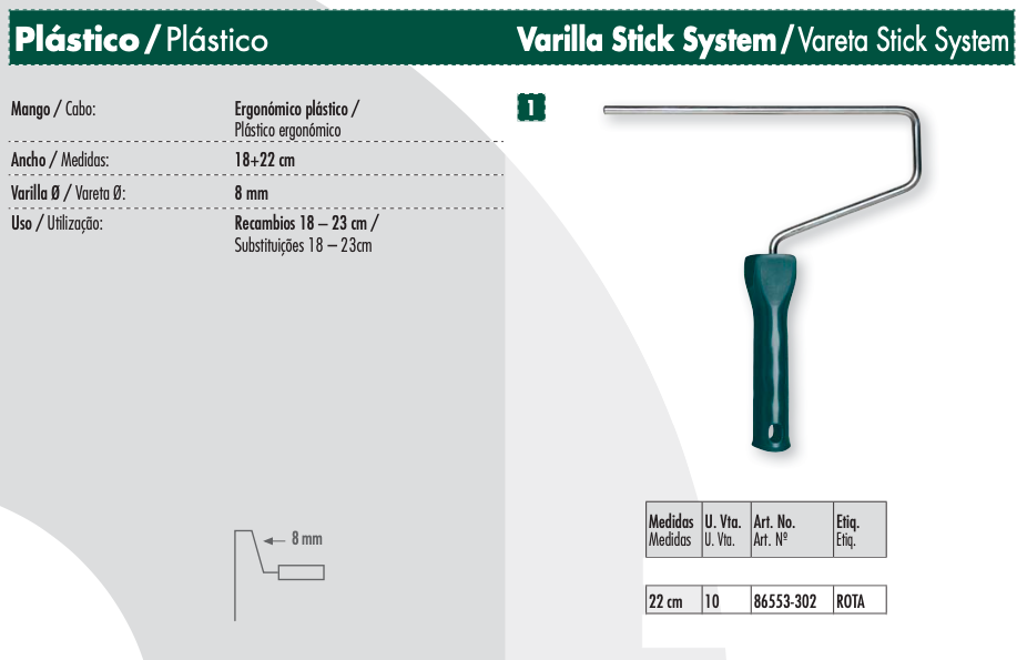 VARILLA RODILLO PLASTICO 22CM cantidad